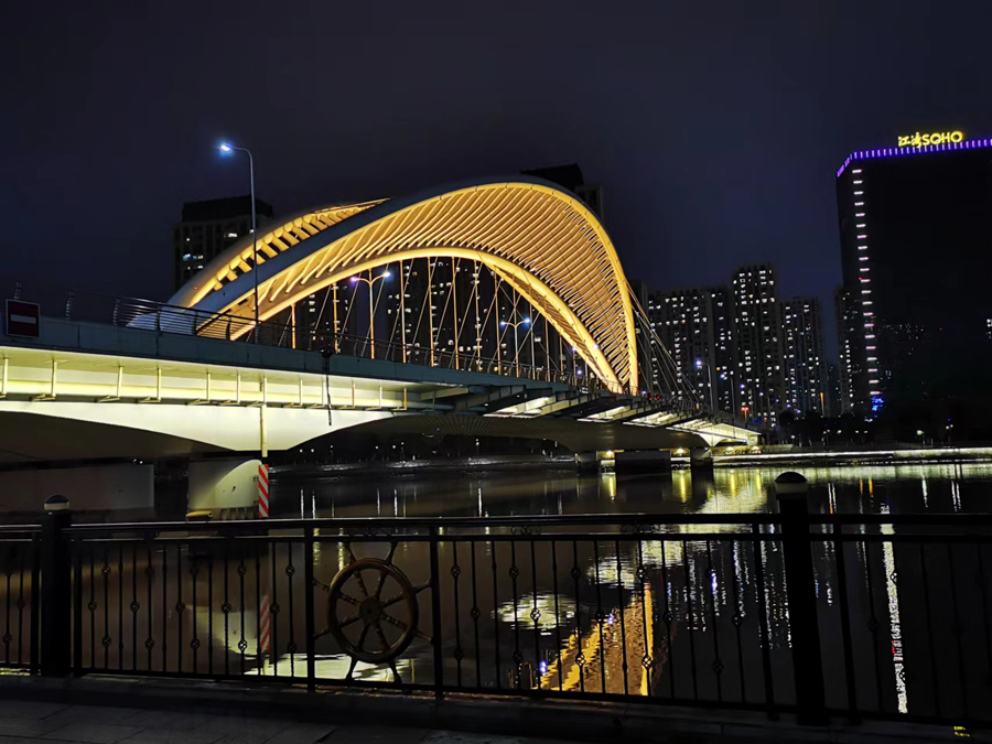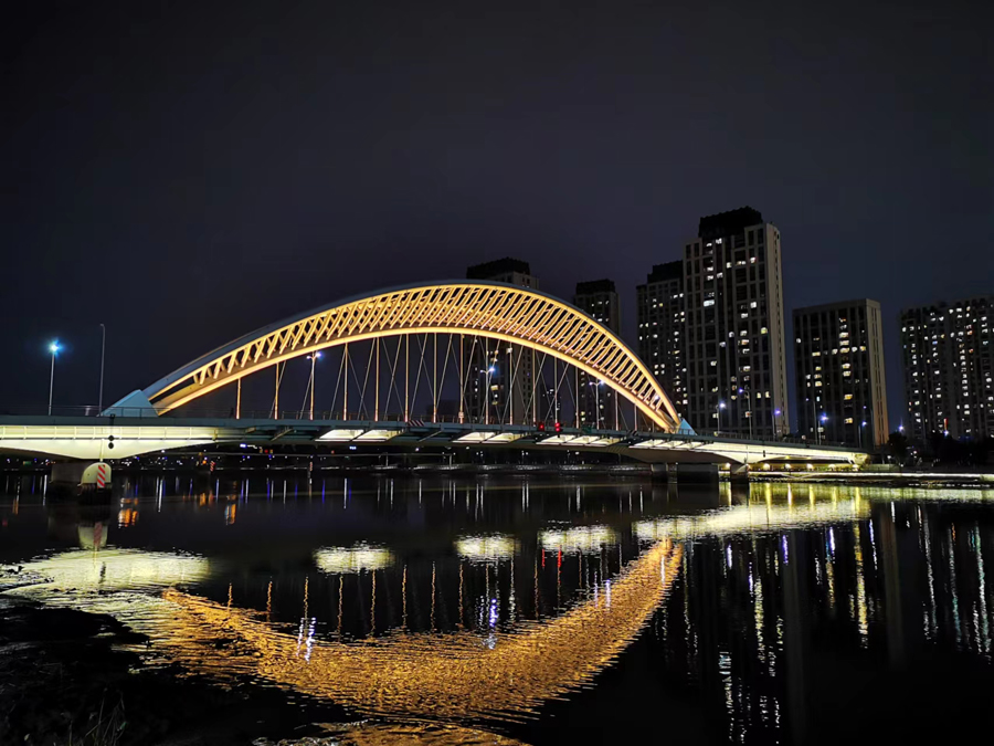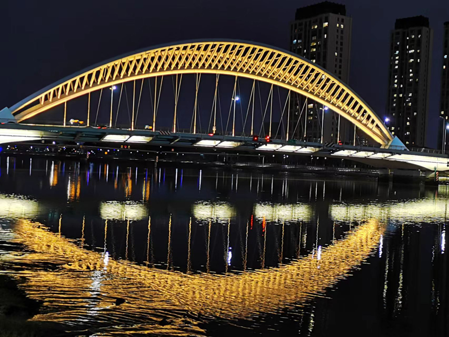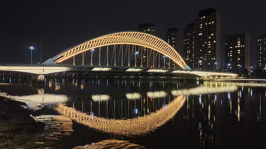 澄浪橋,橋梁主拱猶如一彎新月,橫跨奉化江。 橋梁建設與周邊環境銜接和諧,沿濱江步道行人可自由穿行于拱間。三江六岸又增加了一座多功能跨江景觀橋 。