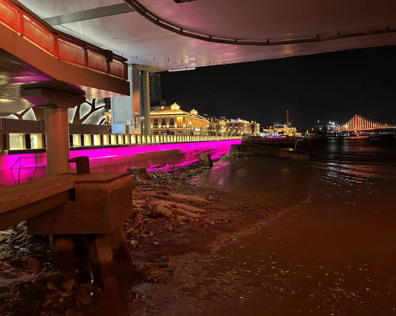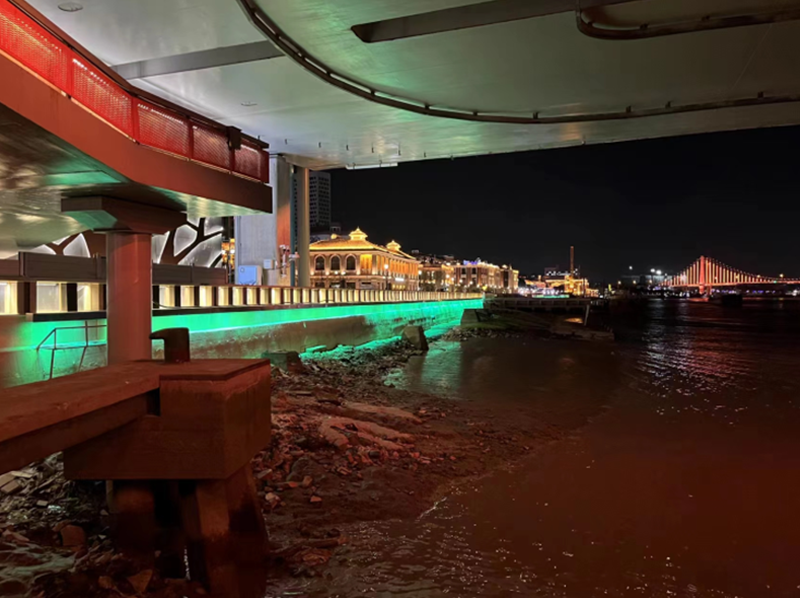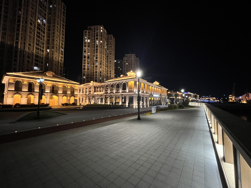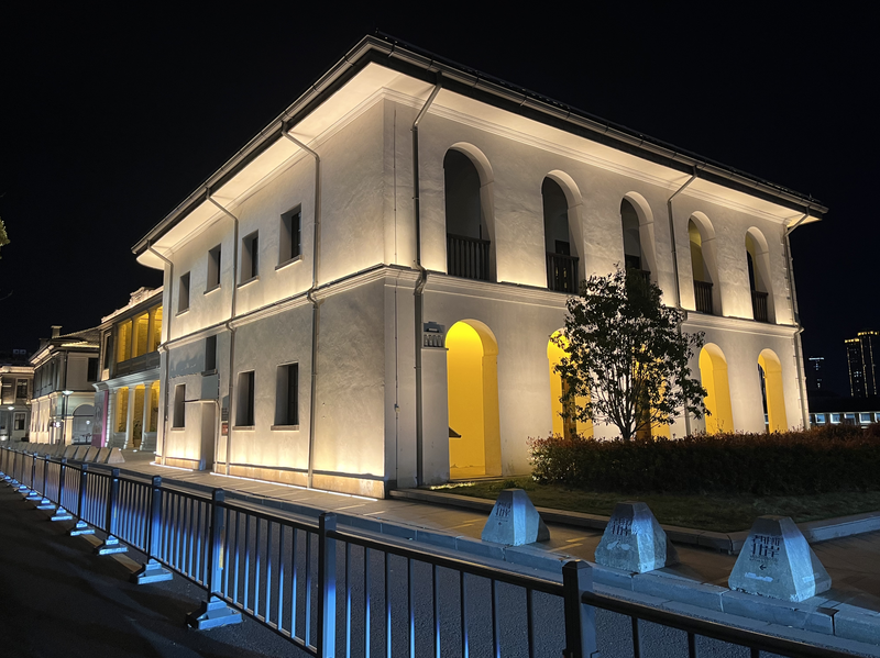寧波英國領(lǐng)事館舊址為江北岸近代建筑群4個建筑之一,英國領(lǐng)事館舊址座落于江北區(qū)白沙街道白沙路56號甬江西北岸,建成于清光緒六年(1880),現(xiàn)僅存英國領(lǐng)事館主樓(辦公大樓)一幢,座北朝南,面闊七間,四坡頂,紅色洋瓦覆蓋,平面呈長方形,八根粗大混泥土方形柱支撐上、下兩層,前置廊,梁架采用近代西式三角形木屋架。室內(nèi)有壁爐、拼木地板,頂部為木條泥滿平頂,上、下走廊采用水泥磨石地坪,屋基四周鋪設(shè)條石。該建筑為保存較完整的典型英國式西洋建筑,2005年被公布為省級文保單位。通過對建筑不同部位不同色溫的搭配應(yīng)用,勾勒出建筑的整體層次感,賦予歷史建筑新的特色與美感。